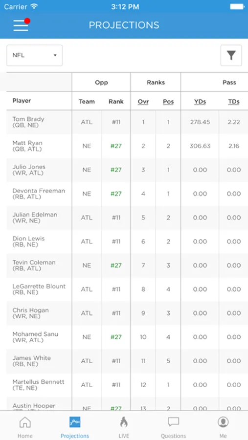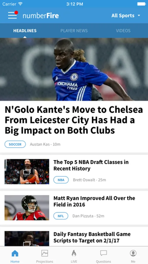 2) Projections - see full player rankings (updated daily) for football, basketball, baseball and hockey... as well as these players' current values on FanDuel and DraftKings.