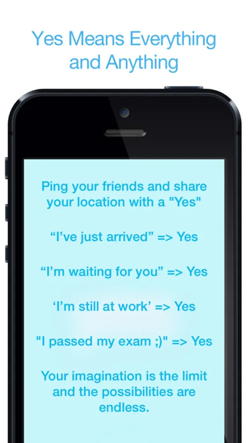Yes is a zero character, context-aware messaging app. The meaning of a “Yes” depends