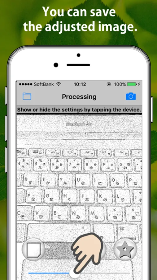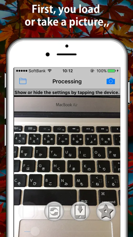 1. Please take a photograph in the "Camera" tab or select a photo in the upper left folder icon.