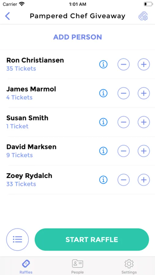 Riffle Raffle is built for direct sales consultants. Create custom raffles to engage with your client base. Add people to a raffle, increase their ticket count, add their contact information and see who wins!