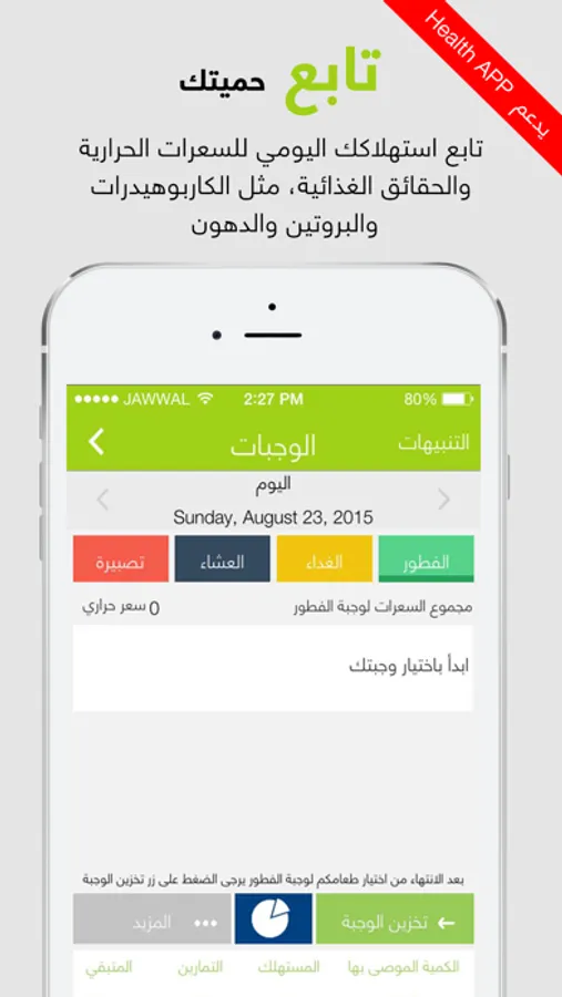 اسهل واسرع تطبيق لاختيار وتسجيل الأطعمة، المشروبات والتمارين