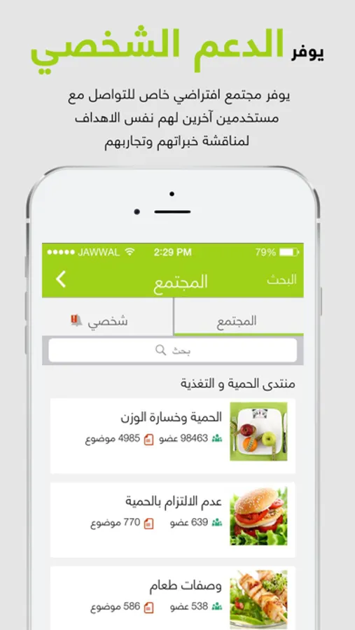 نصائح ضرورية، مقالات خاصة بالصحة و الحمية، ومجتمع رائع متكامل للتحدث مع الاصدقاء واالاعضاء ومناقشة الحمية وغيرها من الاهتمامات المختلفة.