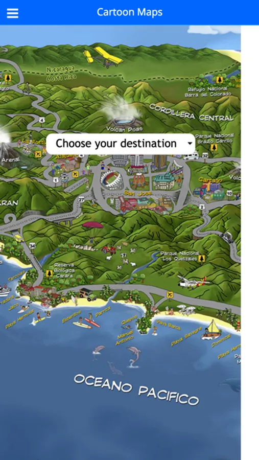 Costa Rica Maps manage a Friendly way to discover turistic areas all over Costa Rica