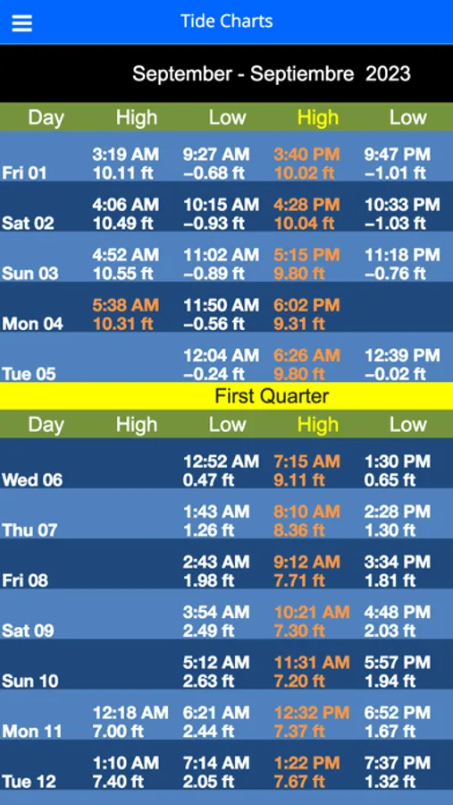 We also have special tabs for Tide Chart and Usefull information for travellers