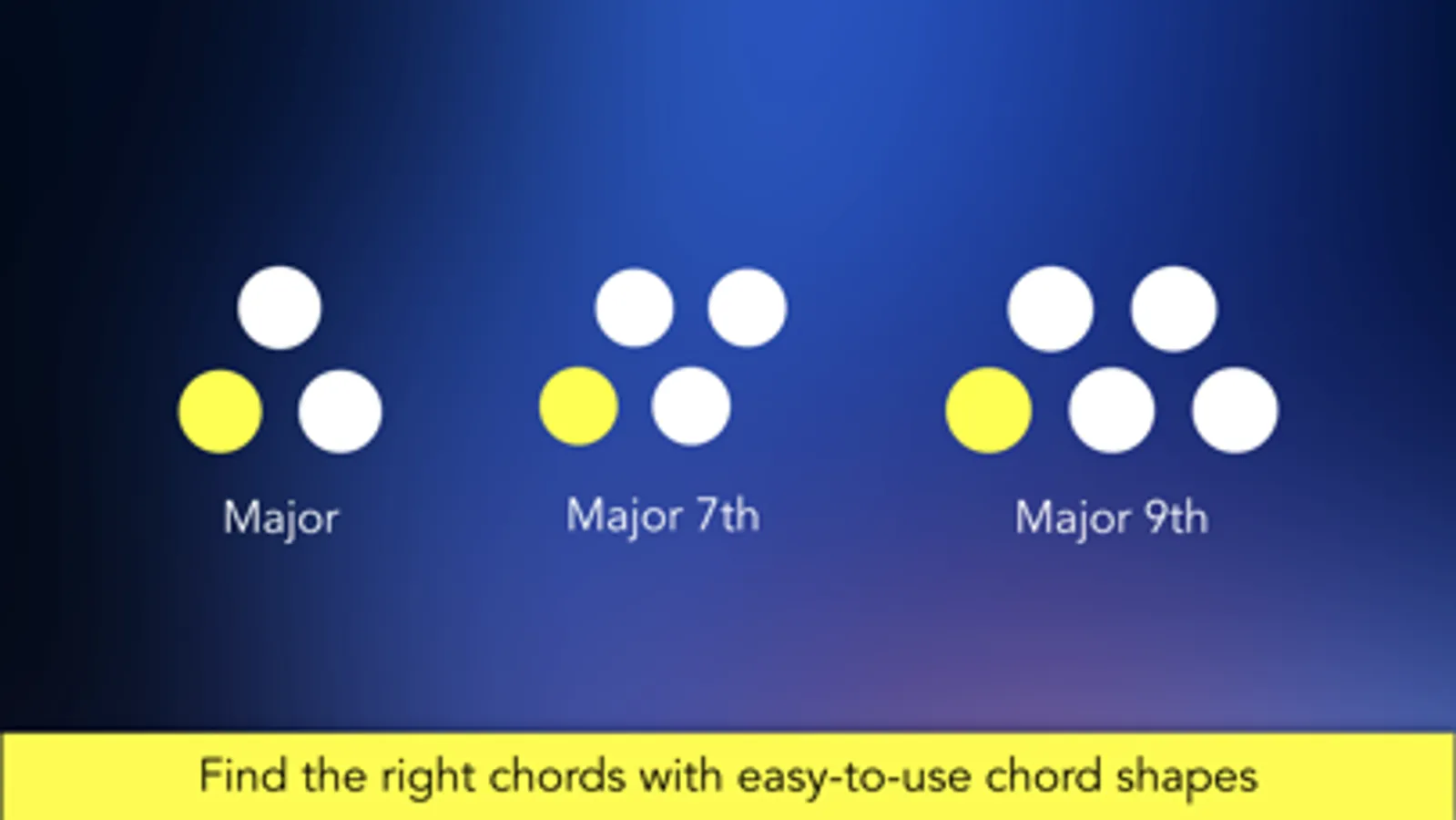 • Play complex chords (sevenths, ninths) with just two or three fingers from any root