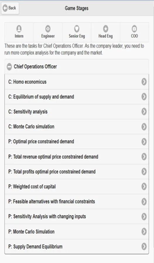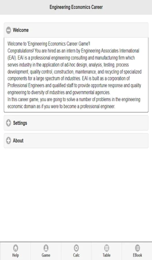 This app is designed to help engineering student to learn the course of 'Engineering Economics' or 'Engineering Economy'. Tools include an E-book with key concepts and video links, common formulas and interest tables. Conceptual questions and practice problems are presented in a simulated career' game. The problems range from the simple questions on time values of money, to Sensitivity Analysis, to Monte Carlo Simulation and to Supply Demand Equilibrium. Complex problems are accompanied by graphical plots. It will be automatically resized for most phones and tablets resolutions. You may also customize exams with problems to test yourself. The mobile app development is sponsored by National Science Foundation DUE #1140457, USA. Developed by the professors teaching this course.