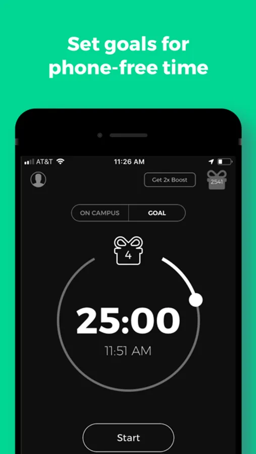 Earn points! Use our timer to track how long you’re not using your phone. For every minute you’re not using your phone, you’ll earn points. Get the most points you can and spend them on awesome student discounts. We’ll help you put your focus on your studies so you can be more productive and feel more accomplished.