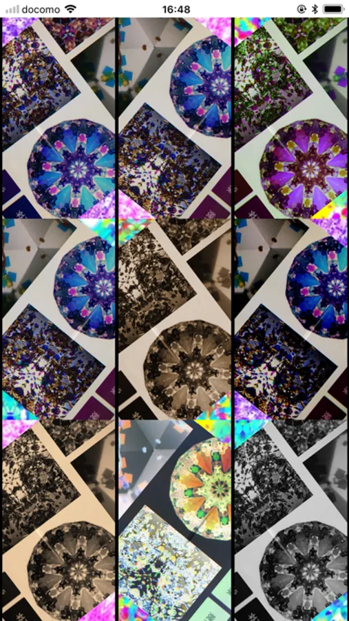 ・When activate the app, 9 photos through 9 different filters are displayed side by side on the screen like kaleidoscope.