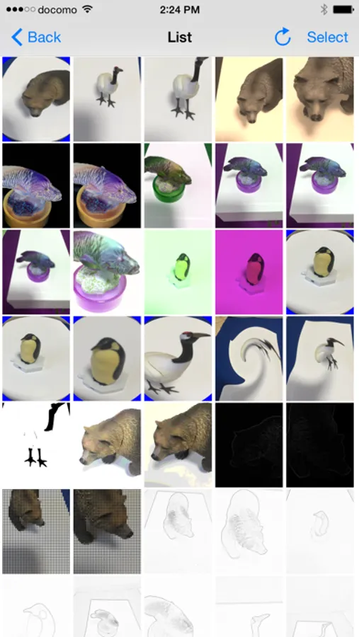 - You can process the images by about sixty kinds of filters such as brightness adjustment, contrast, blur, sharpen, sepia, black and white, edge detection, sketch, etc.