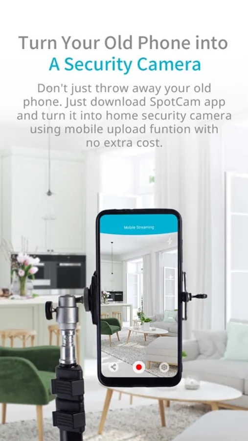 Don't throw away that old phone just yet. Download SpotCam App and enable the mobile video upload function, convert your old phone into a security camera in just 3 minutes.