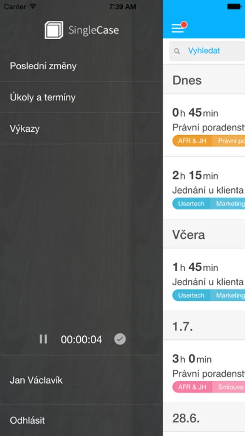Umožníme vám řídit právní kancelář i z mobilního telefonu. Mějte přehled o úkolech, prohlížejte dokumenty, sledujte čas svých schůzek a jednoduše evidujte práci.