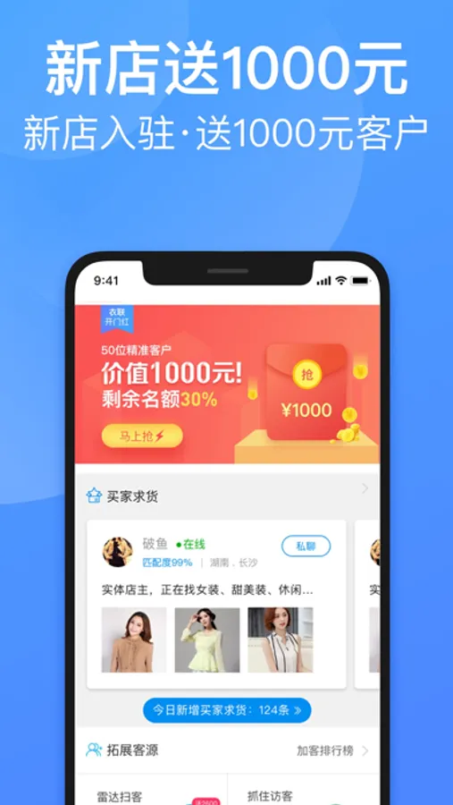 * 智能匹配类目相同的服装店主,客户门当户对不再浪费沟通时间;