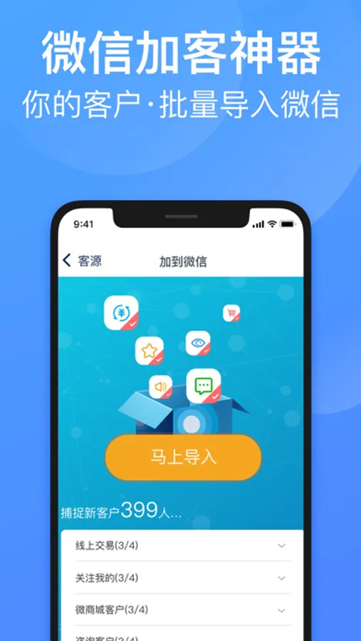* 客户联系方式直接导入到自己的微信,微信还可以同步聊;