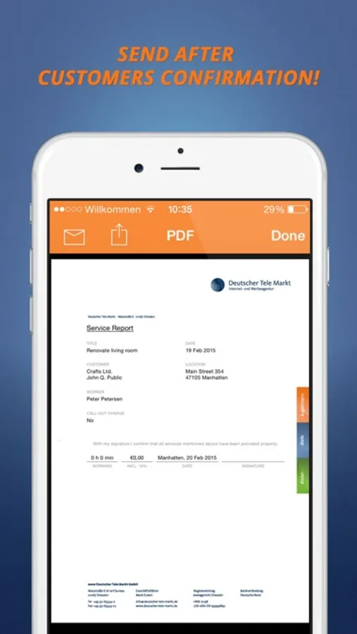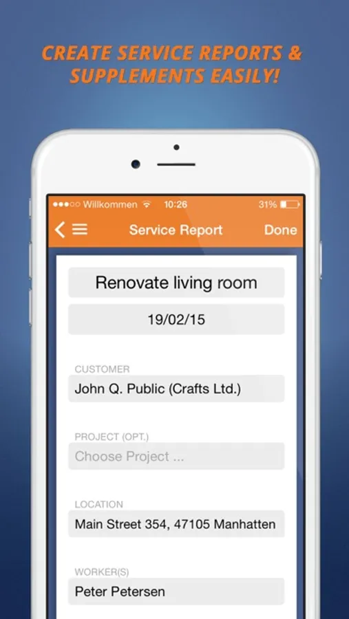 The mobile office for craftsmen, service technicians, maintenance & field service to create & sign digital service reports right on your smartphone or tablet. Immediately during field work with your client. Mobile, digital, simple, fast & secure.