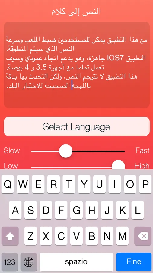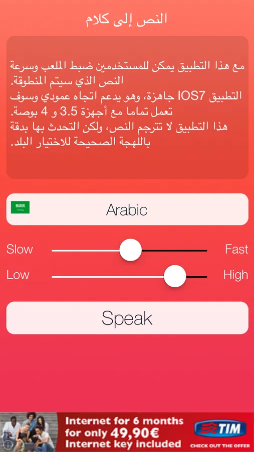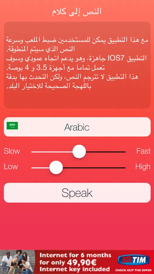 مع هذا التطبيق يمكن للمستخدمين ضبط الملعب وسرعة النص الذي سيتم المنطوقة.