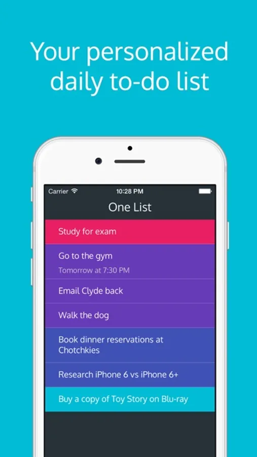 One List is an easy-to-use organizational tool that prioritizes your everyday life. It's designed to help you maximize productivity while minimizing the clutter and confusion that plague most to-do lists.