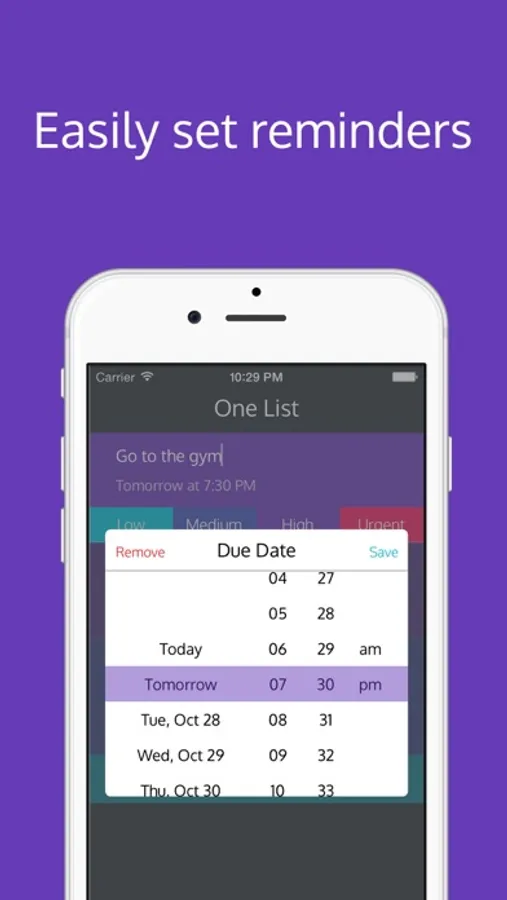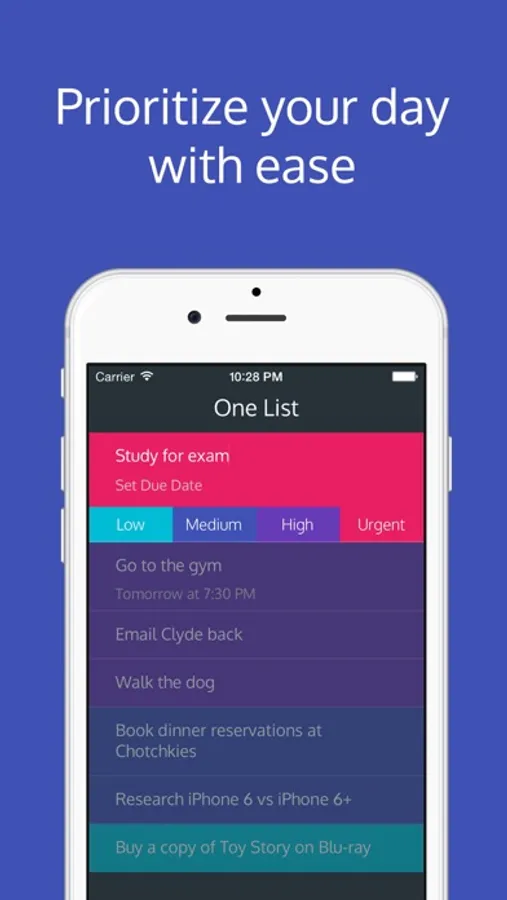 One List makes it easy to visualize your to-do list by automatically organizing tasks for you. Just select a priority!