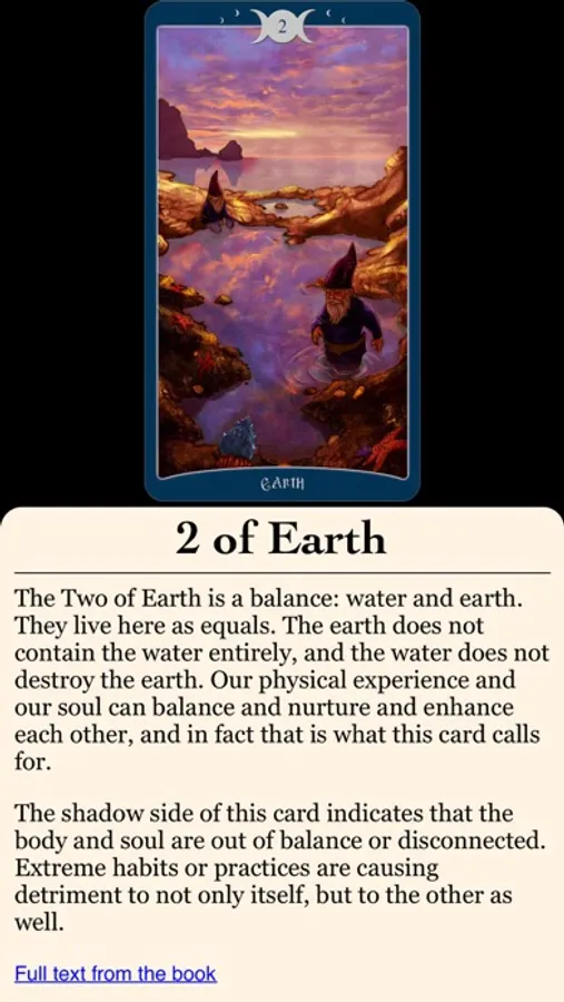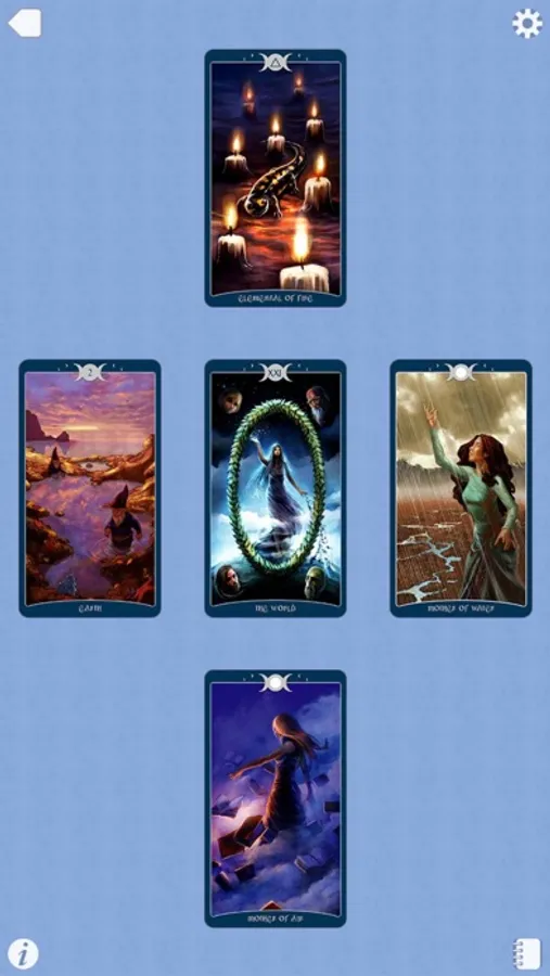 The Minor cards represent different elemental aspects of Pagan cosmology: Air, Water, Earth, and Fire. Each suit expresses the mysteries of its element. In As Above, the court cards are The Elemental, Maiden, Mother, and Crone, instead of the usual royalty.
