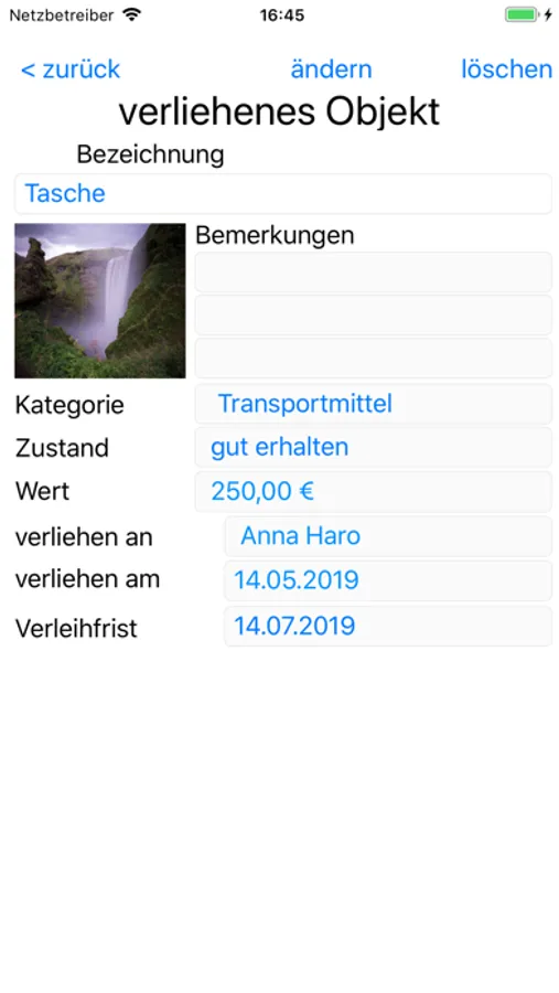 With this app you can watch objects you have lent or borrowed. You get a notification when the rental period of the objects is expired, and the objects will be shown. You use the contacts-app to administrate the data of the persons to who the objects are lent or from the objects are borrowed. You can make and administrate pictures of the objects. You can use the app-data on multiple devices, if the devices use iCloud.