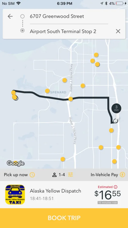 Order a taxi cab in Anchorage Alaska from Alaska Yellow Dispatch using your iPhone