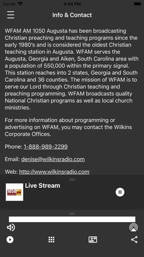 WFAM 5000 watts 1050 AM has been broadcasting Christian preaching and teaching programs since the early 1980’s and is considered the oldest Christian teaching station in Augusta.