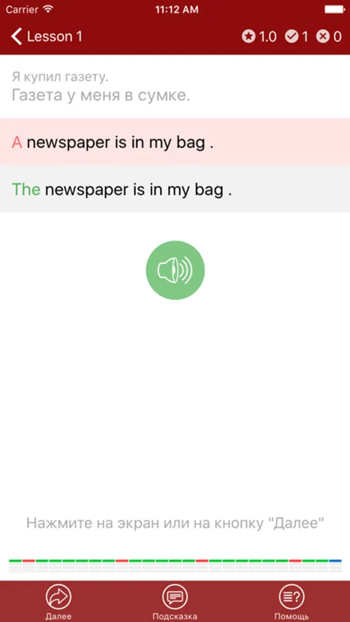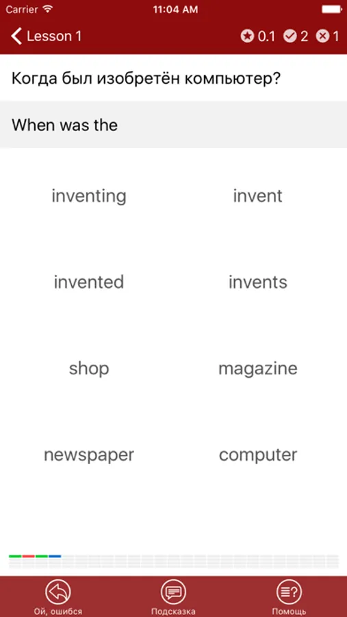 По мере составления ответа, выбранные слова озвучиваются. Затем озвучивается правильный ответ.