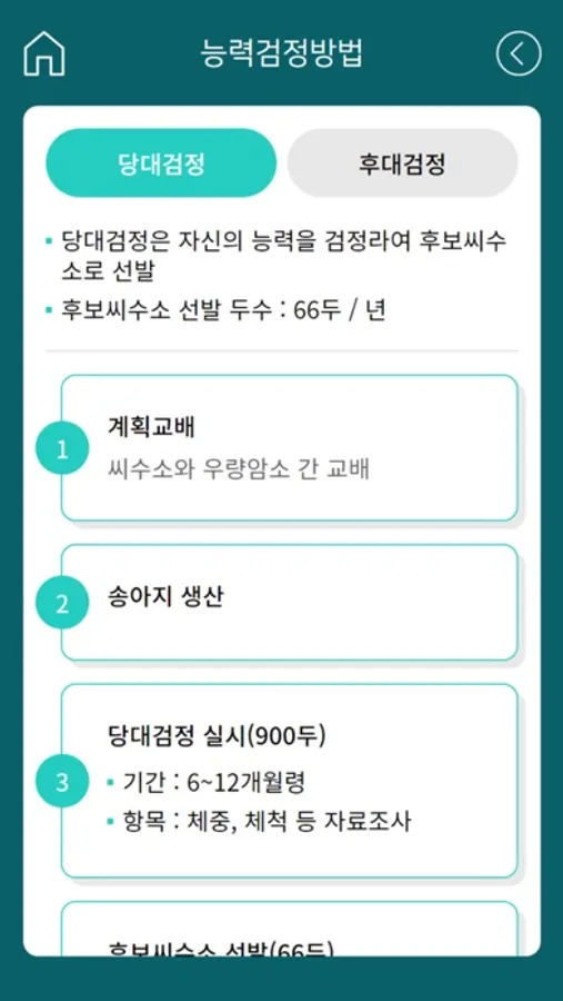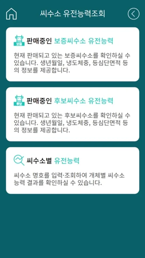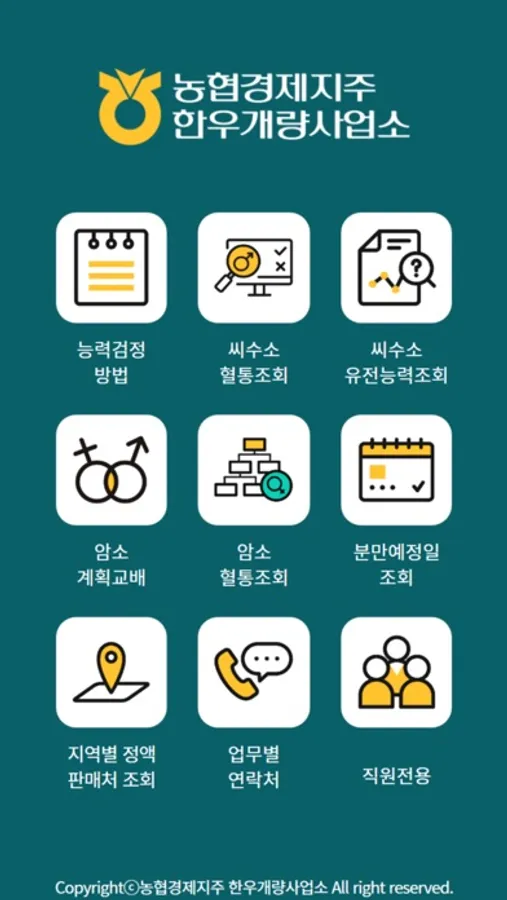 농협 중앙회 한우개량 사업소에서 제공하는 한우 씨수소(정액) 정보 및 계획교배 어플리케이션입니다. 한우 능력검정방법, 혈통조회, 씨수소 정보, 계획교배, 지역별 정액판매처를 편리하게 검색하여 보실 수 있습니다.