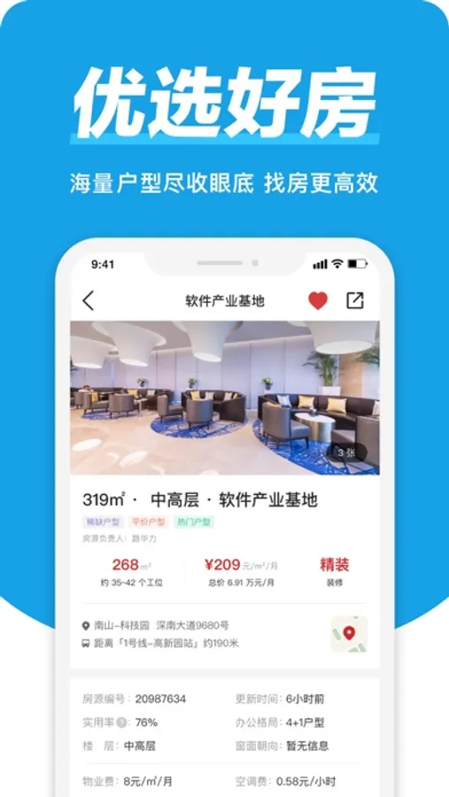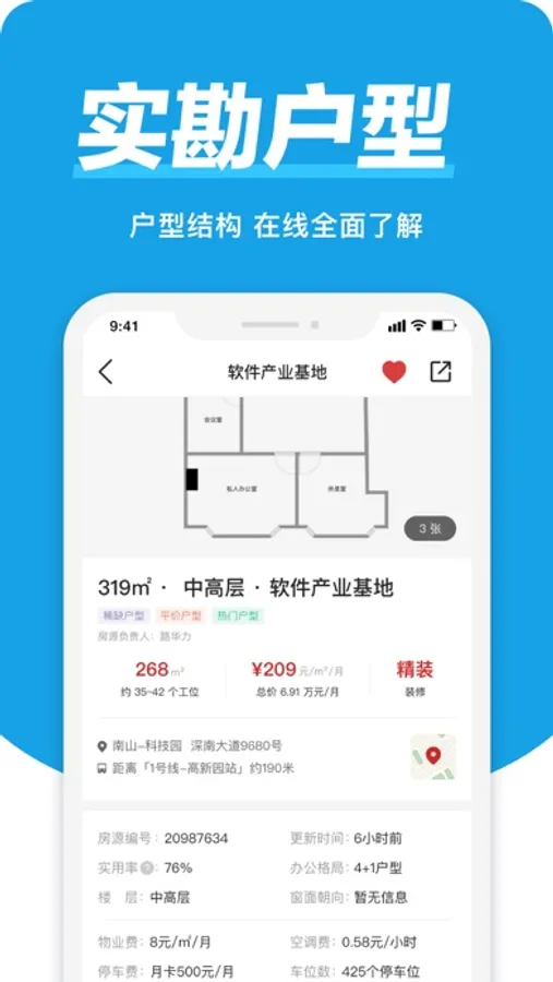 点点租安排资深办公体验师,深入体验每套写字楼办公室,并安排优秀摄影师,拍摄专业实景图、360度室内全景图。致力于为用户呈现详细的办公室室内细节,让线上虚拟看房,从此成为现实!新增地图找房、一键预约看房、主题精选房源等功能,给用户良好的找办公室体验!通过室内全景,街景、地图等,即可查看写字楼详情及周边,足不出户了解楼盘及房源信息。