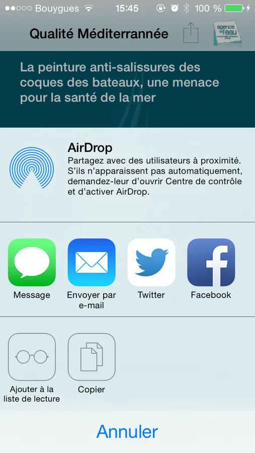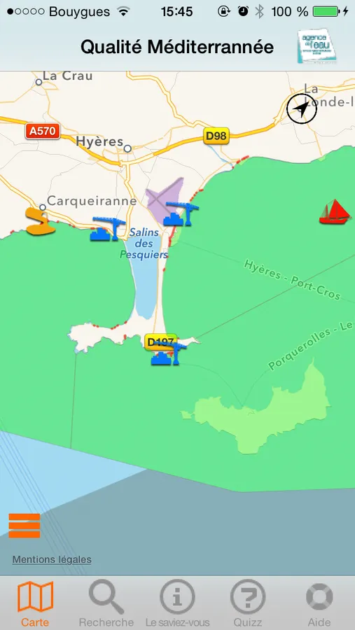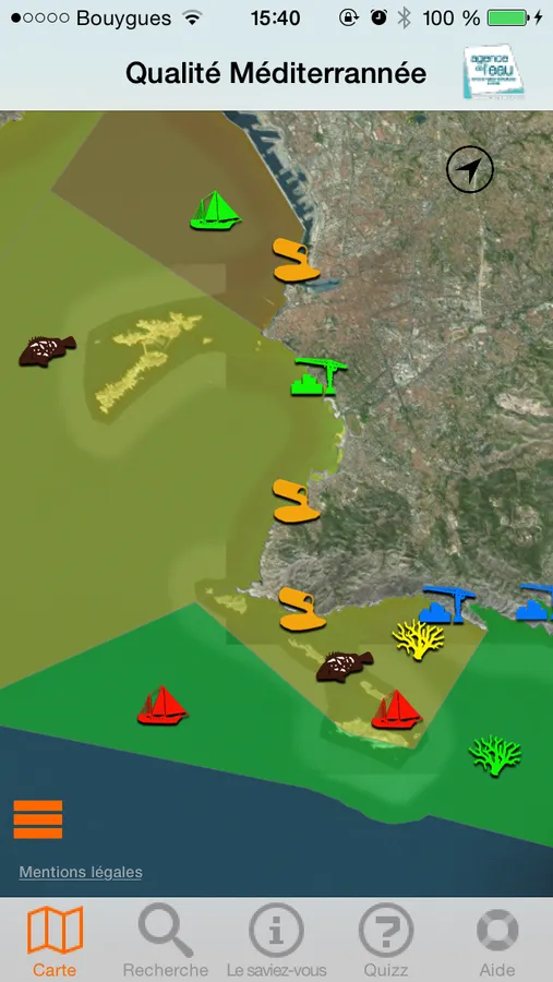 Cette application est à l’initiative de l’agence de l’eau Rhône Méditerranée Corse, établissement public de l’Etat dédié à la protection de l’eau, des rivières à la mer. Experte de la mer, elle coordonne les réseaux de surveillance de l’état de santé des eaux côtières et marines. 500 points de surveillance en France mesurent la pollution chimique, la biologie marine mais aussi les usages en mer, les macrodéchets ou bien les espèces invasives. Par ailleurs, l’agence de l’eau perçoit l’impôt sur l’eau payé par tous les usagers : ménages, collectivités, industriels, agriculteurs… Chaque euro collecté est réinvesti auprès des collectivités, acteurs économiques, agriculteurs, scientifiques et associations qui agissent pour mettre aux normes les stations d’épuration, renouveler les réseaux d’eau potable, économiser l’eau, protéger les captages d’eau potable des pollutions par les pesticides et les nitrates, restaurer le fonctionnement naturel des rivières, préserver le littoral et la mer.