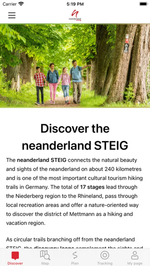 Let yourself be guided interactively and multimedia-based along the neanderland STEIG and hike through the ten towns of the district of Mettmann.