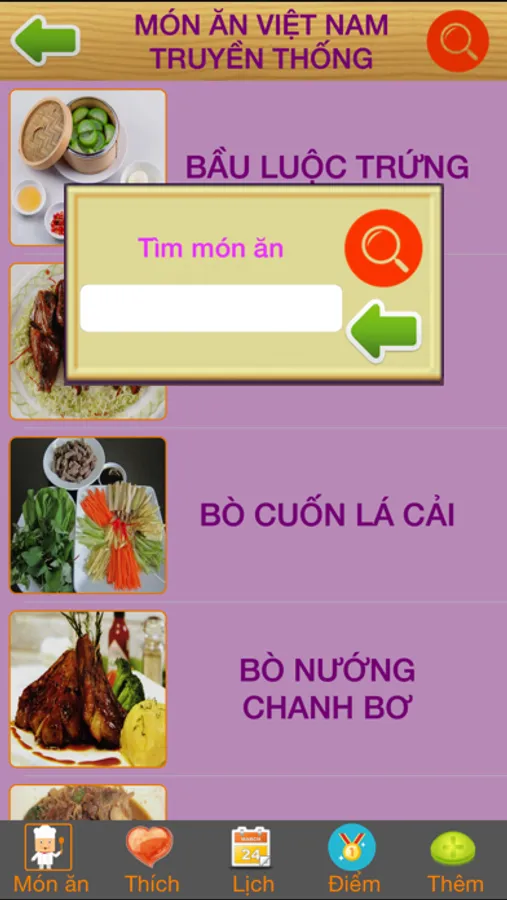 - Bạn có thể lưu trữ các món ăn ưa thích