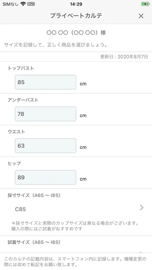 また、ご要望が多かった自分のサイズが把握できる【プライベートカルテ】もご覧いただけます。