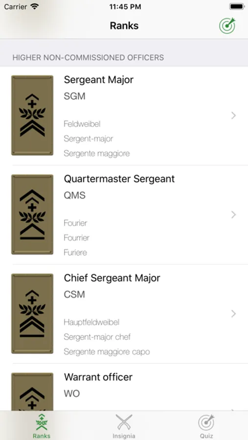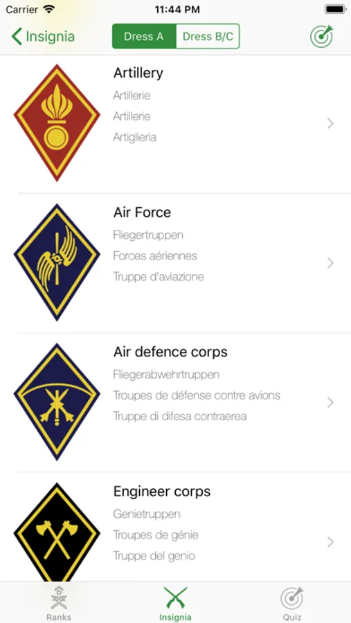 Play the interactive quiz or look up the insignia you didn’t know. The following insignia are contained: