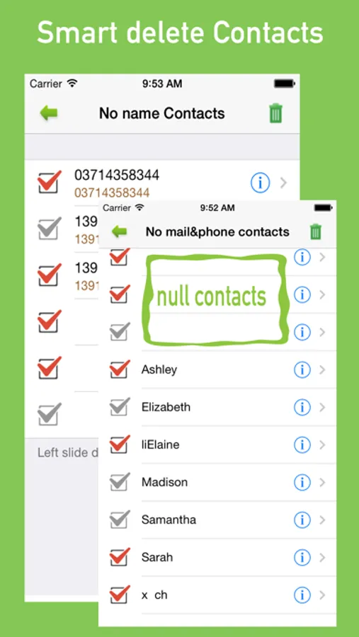 For missing name, phone, eMail and other important information of contacts , you can easy delete or fix them.