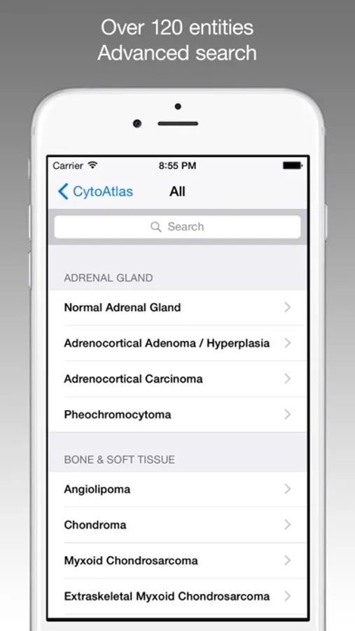 CytoAtlas is intended to be a learning aid for physicians, medical students and technologists interested in Cytopathology and provides a quick reference resource for common cytologic diagnoses. Created by Cytopathologists the current database has over 750 high quality slide images with morphologic descriptions and highlighted key features in over 100 diagnostic entities. In this initial release we have included the most common entities, including normal and malignant, that are encountered in the practice of exfoliative and aspiration cytology.