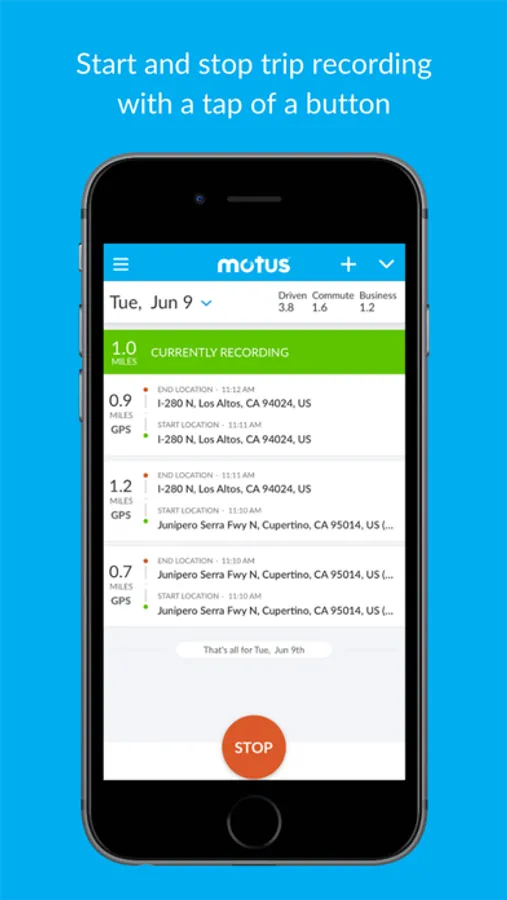 The Motus App gives you access to your Motus account on the go. Modify your business mileage log from anywhere – and enjoy the freedom to spend time on what’s most important in your day. IRS-compliant mileage logs are instantly created and saved in the cloud, so you’ll have peace of mind in case of an audit.