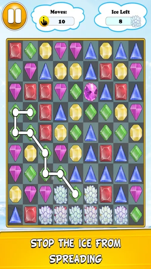 Play an addicting game of connect diamonds. Connect groups of identical diamonds by sweeping across. You must connect 3 or more diamonds in order to ignite a blast. Trace a path from the first diamond to the last diamond from that group without overlapping. When ready, release the diamonds you connected and they will blast one by one. Connecting a large group of diamonds will earn you bigger and bigger scores and the chance to generate special diamonds. At advanced levels you may need to use strategic special diamonds in order to win.