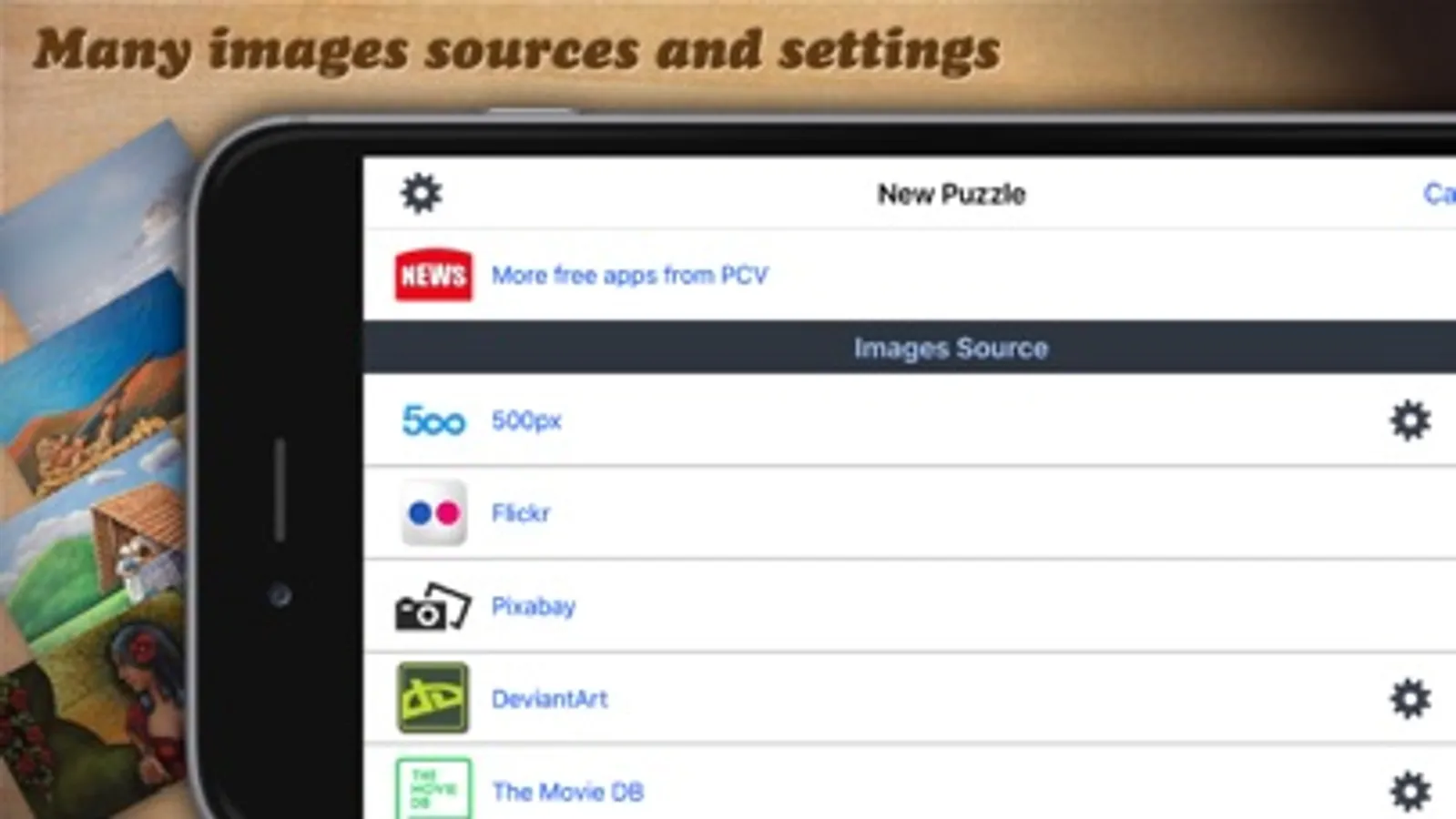 Pick a puzzle from a variety of sources or simply create your own using your photos library. New sources and featured collections are added periodically.