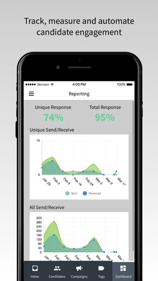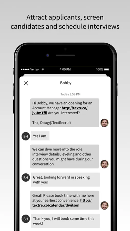 • Send texts to announce job openings and screen candidates
