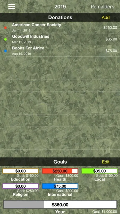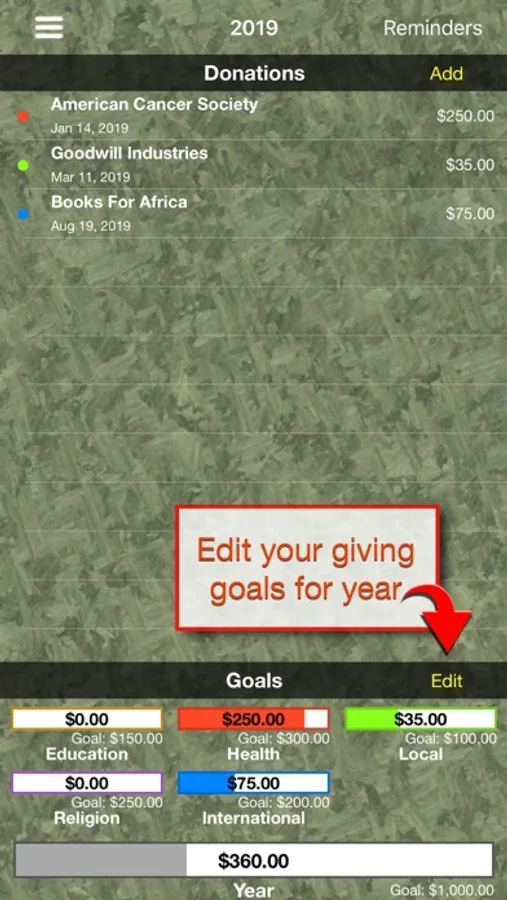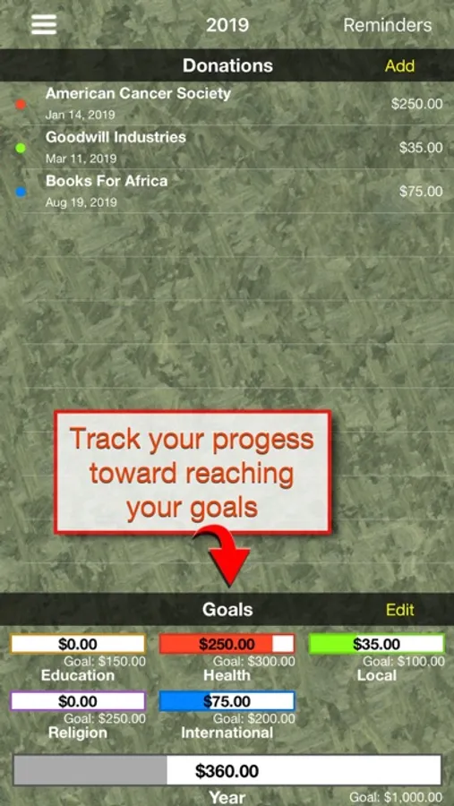 Set and reach your charitable giving goals with Give Tracker.