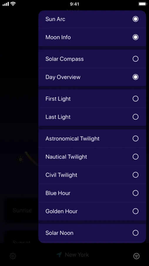 Sun Information Available - Sunrise, Sunset, First light, Last Light, Golden Hour, Blue Hour, Astronomical Twilight, Nautical Twilight, Civil Twilight, Solar noon, Solar Midnight.