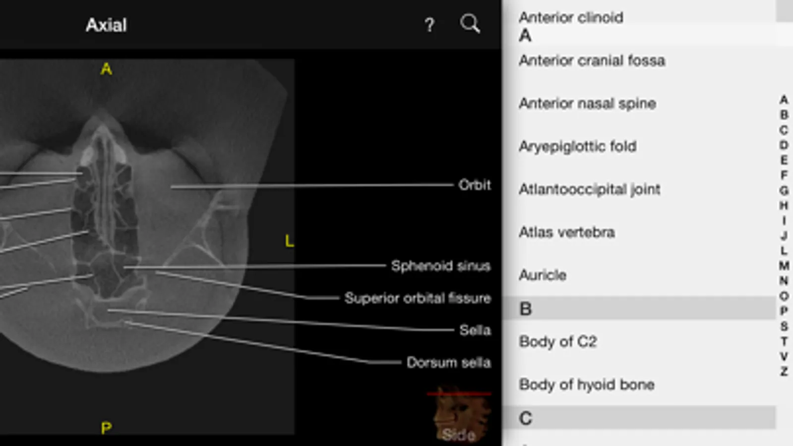 The level of interactivity and visualization is unprecedented. This amazing app covers hundreds of anatomical landmarks visible on CBCT data sets from small to medium to large field of views (FOVs). It also allows you to test your knowledge through the quiz mode, which is very cool. You can also search for a landmark or pick it up from an alphabetical list and the app fly you there.