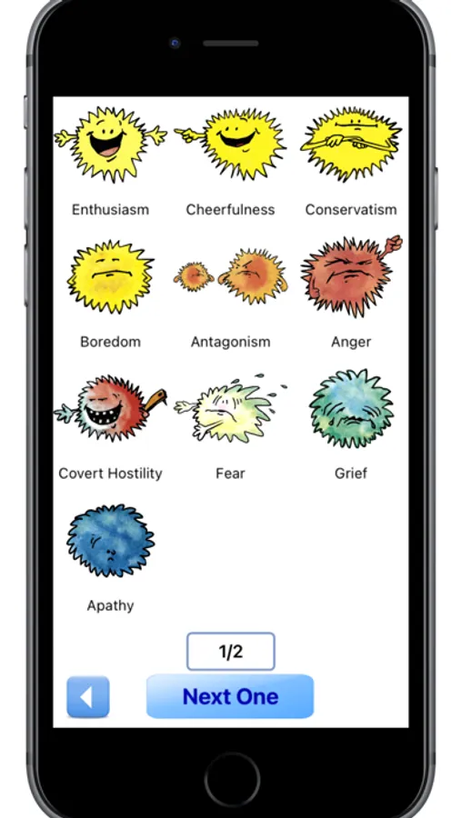 - Ten different emotions/attitudes: Apathy, Grief, Fear, Covert Hostility, Anger, Antagonism, Boredom, Conservatism, Cheerful and Enthusiasm.