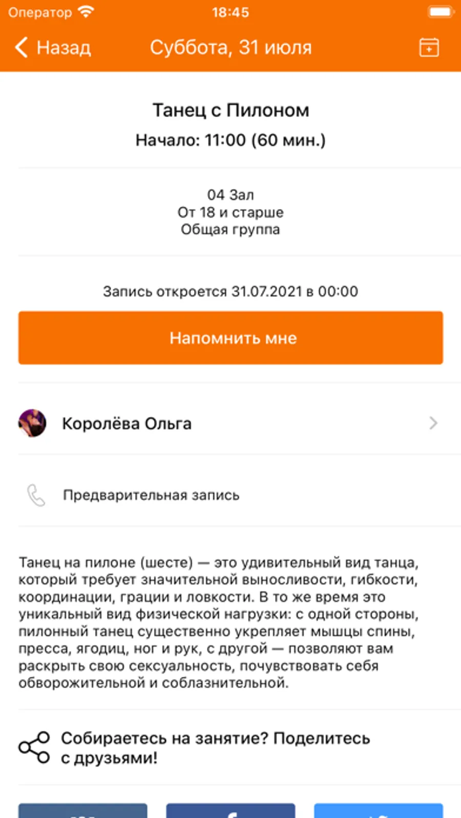 - получать оповещения о предстоящих тренировках и обо всех изменениях;