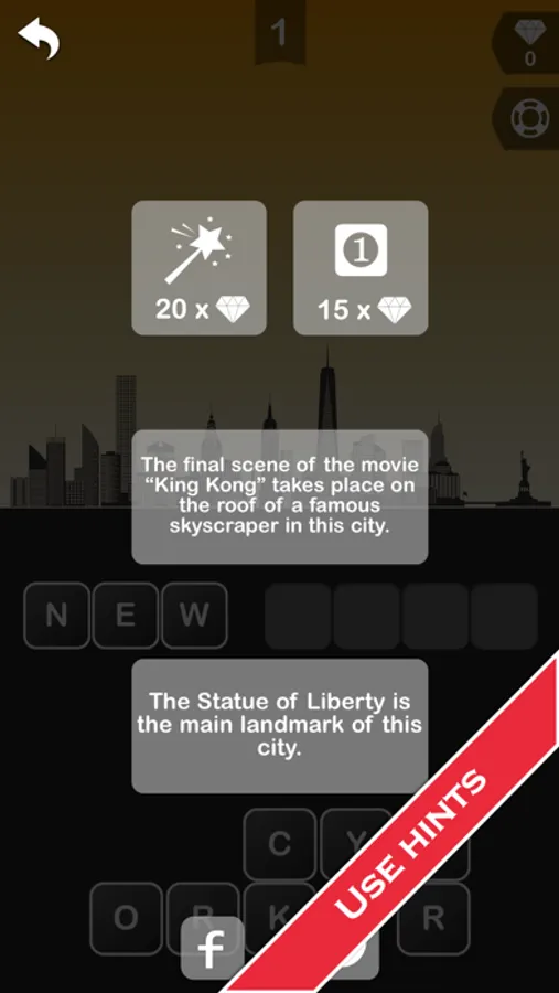 Don’t know the answer? Fear not! Use hints with interesting facts about each city or reveal the first letter of the name. If the hints haven’t helped and you’re still stuck, use the magic wand to just skip the level!