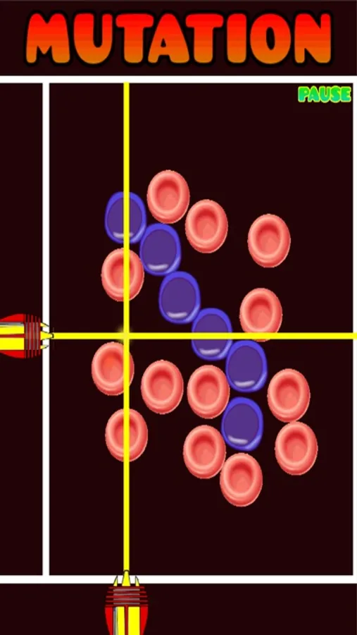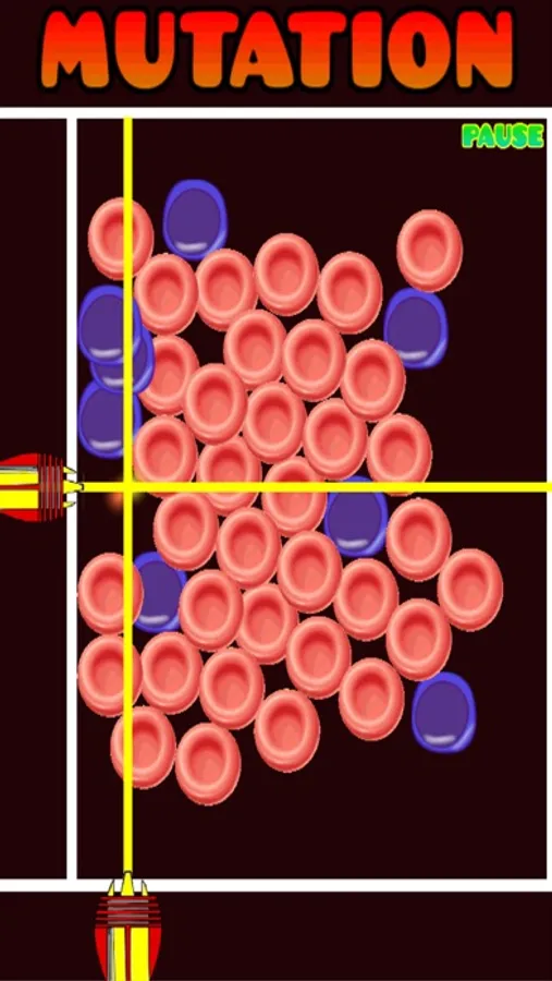 Place one finger on each laser, where the beams cross there is enough power to destroy any cells. Your job is to kill the mutated darker, purple blood cells.