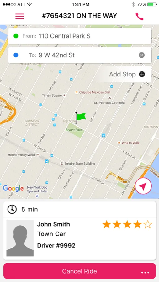 • Driver location and ETA