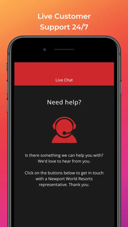 It's a concierge in your pocket! A 24/7 live chat gives you quick access to customer assistance.
