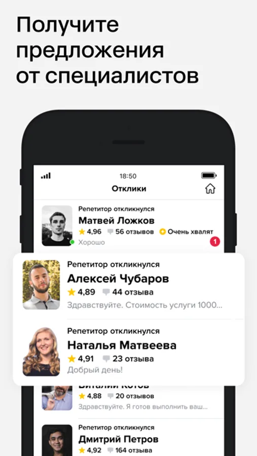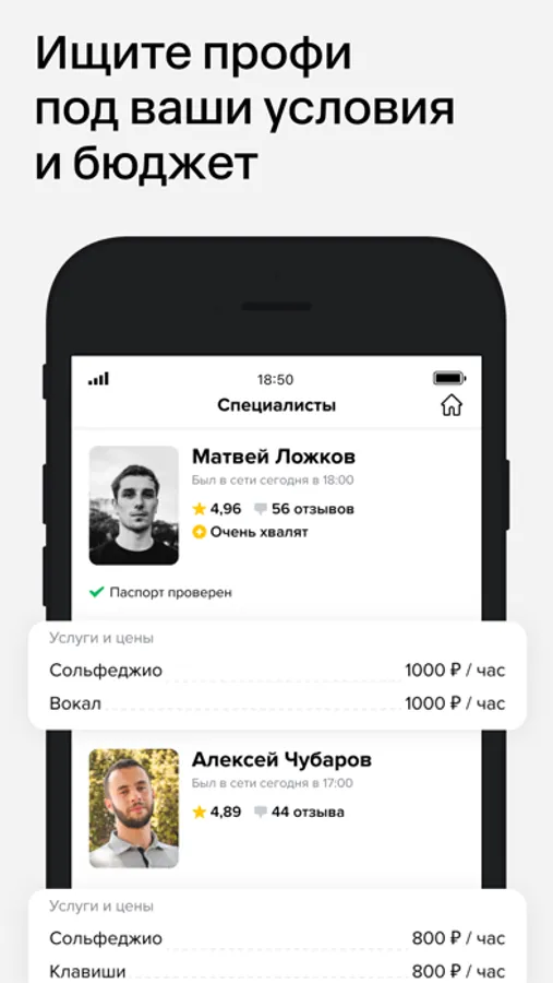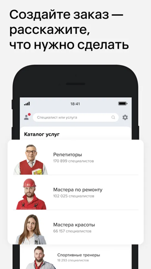В приложении Профи вы найдёте самых разных специалистов — репетиторов, психологов, сантехников, парикмахеров, тренеров, бухгалтеров.