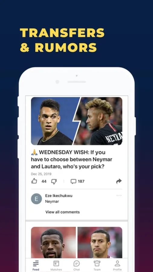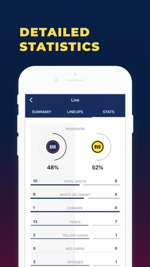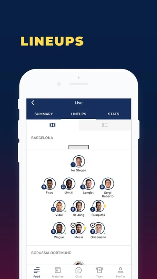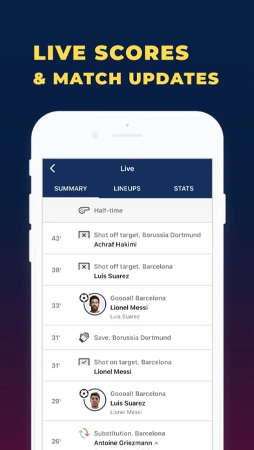 √ Adjust notifications for live scores and results, lineups, substitutions, yellow and red cards.